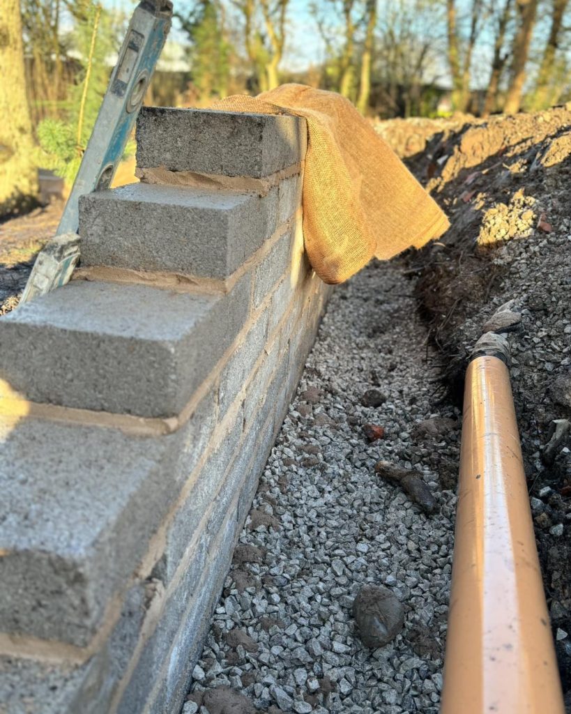 We’re currently working on the early stages of a beautiful York stone-faced retaining wall for a client in Altrincham. This is part of a larger landscape design and transformation project tailored to both enhance the garden’s structure and complement the property’s surroundings.