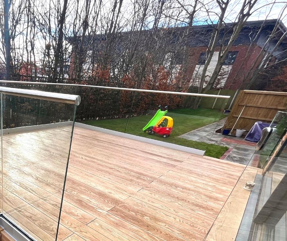 Surrounded by stainless steel and glazed infinity balustrade and some reclaimed Cheshire brick slips .