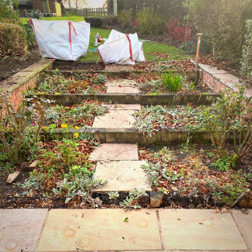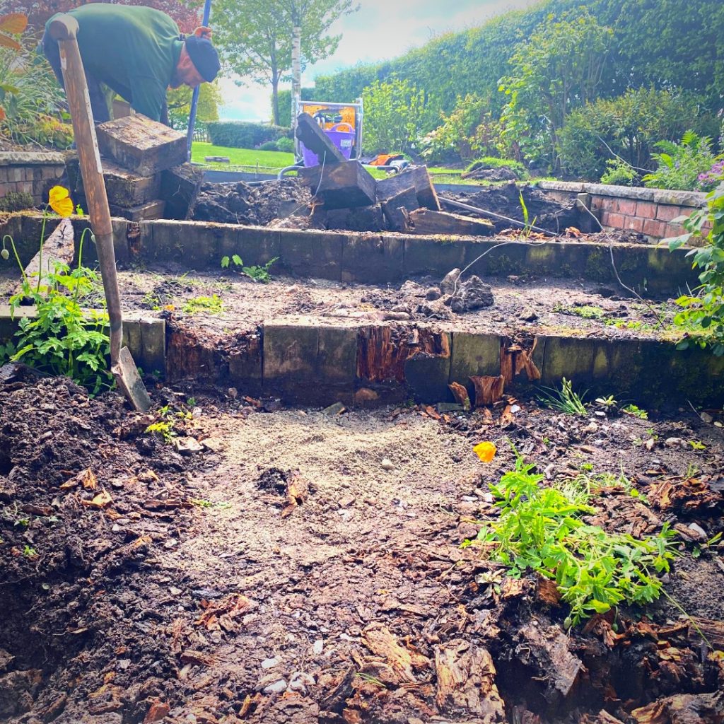 Replacing these old rotten sleepers with 6mm steel to create large deep steps that will eventually be surrounded by some wonderful seasonal planting.